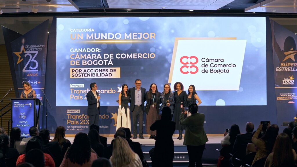 - Acciones de Sostenibilidad, que reconoce a quienes demuestran que desarrollar país requiere equilibrio entre crecimiento económico, bienestar y cuidado del entorno, destacó como ganador a la Cámara de Comercio de Bogotá.